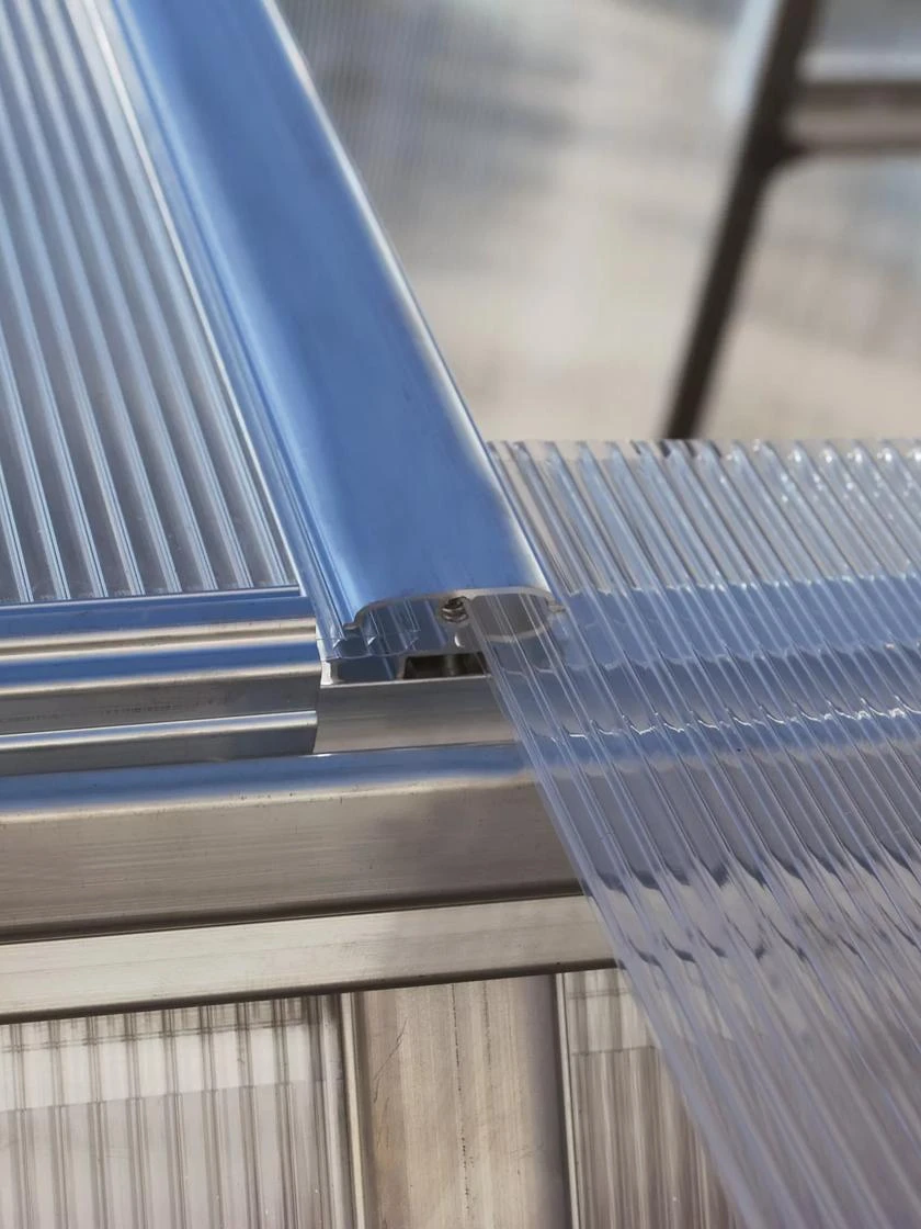 - Easy DIY installation, sliding panels’ assemblysystem, ready to assemble pre–drilled profiles, and pre–cut panels