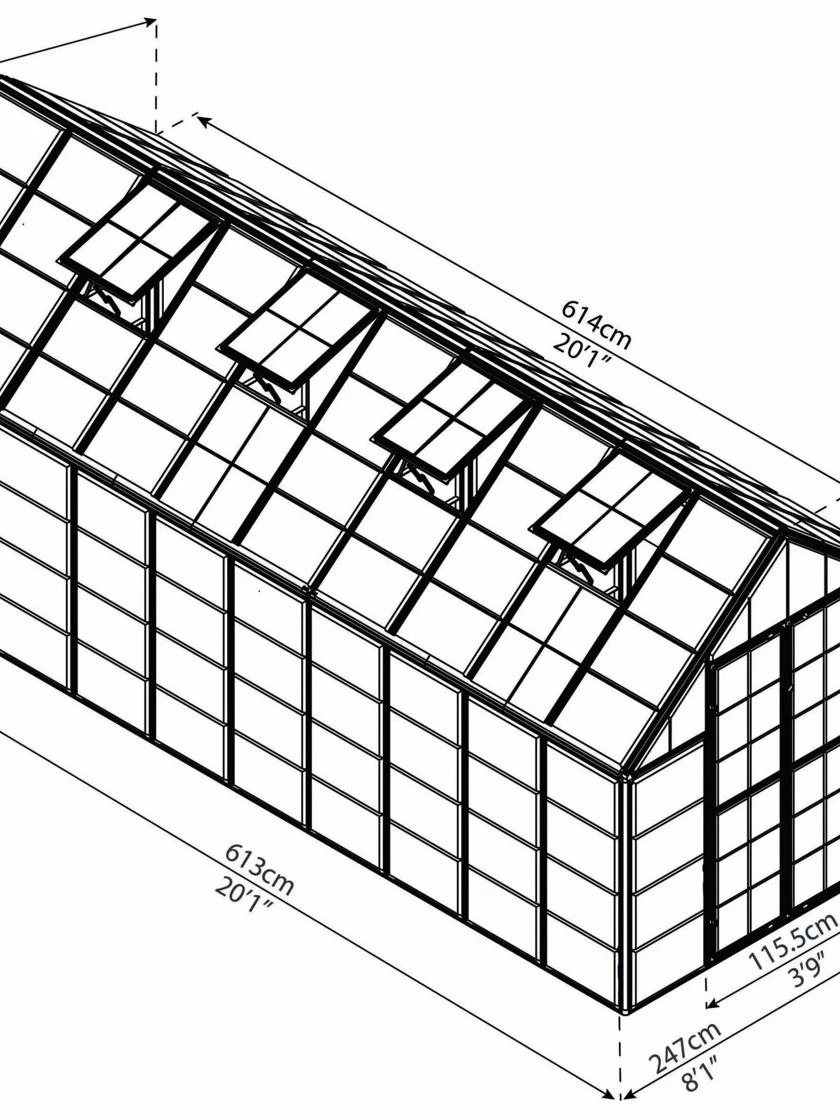 Enjoy gardening with the Snap & Grow™ 8′ polycarbonate greenhouse. This luxurious greenhouse is perfect for starting early spring seedlings and late fall harvests. Grow vegetables, flowers and fresh herbs while enjoying the ample headroom and generous floor space. The attractively-finished silver, reinforced aluminum frame is durable and low maintenance. It is quick to set up with our SmartLock connecting system and features virtually unbreakable, crystal-clear polycarbonate panels which are 100% UV-protected for maximum light transmission and growing efficiency. Access to the greenhouse is comfortable through a wide double door and the roof vents allow you to regulate temperatures, humidity and airflow. This greenhouse blends functionality with beauty, allowing you to enjoy longer growing seasons and a wider variety of plantings in a greenhouse you will be proud to show off.