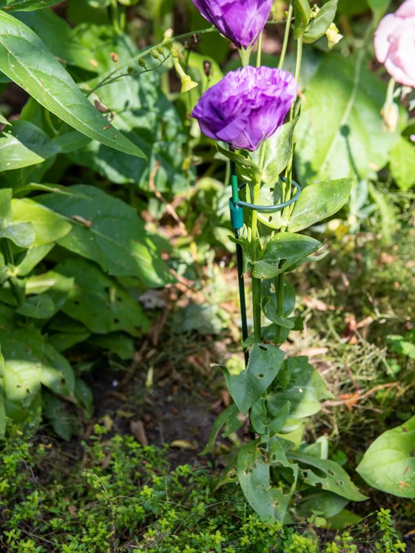 Designed to last a lifetime, these superior plant rings are simple, attractive, and ultra versatile. The unique system allows rings to slide easily up the stake to keep pace with your plant as it grows — and yet won’t slip down under bloom weight. Galvanized steel has a protective vinyl coat that’s gentle on stems. And a glossy finial atop the stake keeps human eyes safe from inadvertent pokes.